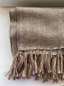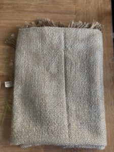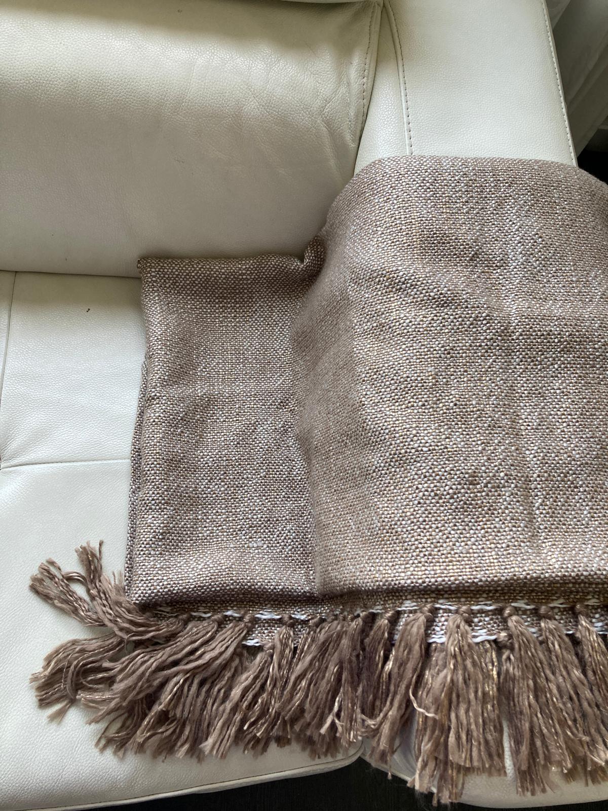 Heel mooi kleed, aangeboden door TMC Goes. Staat bijvoorbeeld prachtig op de bank of als tafelloper. Kan met veel kleuren en materialen gecombineerd. Er zit een mooi subtiel gouddraadje in.  Ter waarde van €60. Afmetingen: 1.72×1.40m zonder franjes.